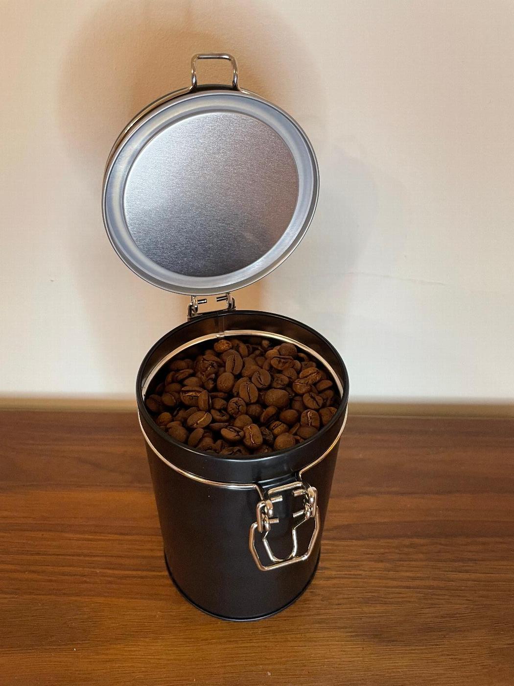 Perfect for packaging coffee, tea, hot chocolate, biscuits and countless other food items. A 225g bag of coffee beans fills the tin,